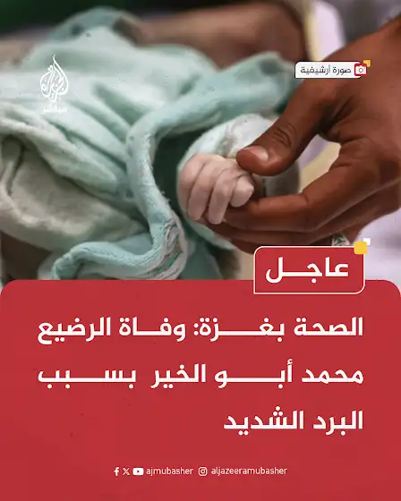 الصحة بغـ ـزة: وفاة الرضيع محمد أبو الخير بسبب البرد الشديد #الجزيرة_مباشر