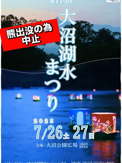 大沼湖水祭りは熊出没の為中止‼️