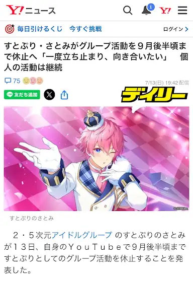 さとみさんが活動休止するなんて...とても信じられない...でも9月末まで休止するので、そこは安心して欲しい。