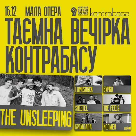 Загинайте пальці: The unsleeping, the feels, Sheetel, lumosback, Бурко, Крамдада, Колмен. Дивні ідеї на сцені, новий мерч, важливі анонси. А ще - 30 інших дрібних і не зовсім причин бути 16 грудня у Малій Опері. Контрабас збирає всіх-всіх на Таємну вечірку. Наполегливо рекомендуємо вклеїтись у цю тусовку!