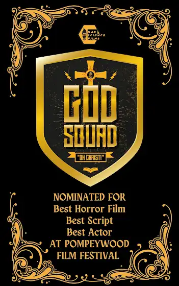Beyond thrilled that following the announcement for GOD SQUAD’s World Premiere at PompeyWood Film Festival, our twisted little flick has been nominated for three awards.