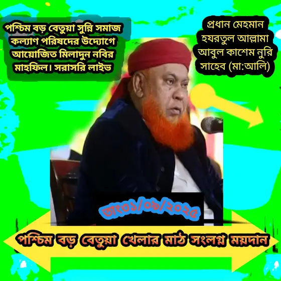 আগামীকাল পশ্চিম বড় বেতুয়া সমাজ কল্যাণ পরিষদের উদ্যোগে আয়োজিত জসনে ঈদে মিলাদুন নবির মাহফিল এর সরাসরি লাইভ দেখতে চোখ রাখুন adobe rashed ইউটিউব চ্যানেল এ