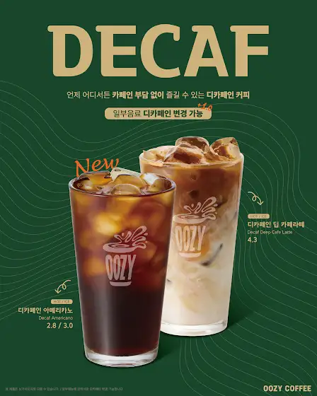 카페인 함량을 현저히 줄여 민감한분들도 부담없이 즐길 수 있는 우지커피 디카페인 음료! 고도의 로스팅 기술을 이용하여 커피 고유의 맛과 향을 보존하였습니다 😊 이제 우지커피에서 언제 어디서나 카페인 부담 없이 마음껏 즐겨보세요👍🏻🤎 * 아메리카노, 딥 카페라떼 외 일부음료 디카페인 변경 가능 * 각 매장 상황에 따라 디카페인 판매 여부가 다를 수 있습니다. ✅디카페인 운영 매장 석촌점 중랑구청점 창동점 대학로점 함송점 다산중앙점 인천계양점 동원사거리점 별내북부점 망원한강공원점 인천갈산역점 시흥은계점 강동성심병원점 고양원흥중앙점 광주수완아울렛점 제주중문점 부평부흥오거리점 파주운정이마트점 안산중앙역남부점 김포구래점 전북남원점 호구포역점 하남미사역점 위례역점 충남내포신도시점 구리수택점 부천중동점 마곡점 노원역점 수원인계점 루원시티점 영종하늘도시점 망우점 가락시장역점 원주무실점 양산점 안산법원점 부천신중동역점 운정해오름마을점 송내역점 수원장안구청점 만안구청점 동탄2시범단지점 청라우리점 홍대동교점 구로중앙유통단지점 부평그랑힐스점 문정테라타워점 가정역점 일산식사점 상암KGIT점 민락코스트코점 고양서정마을점 동탄목동점 운정가람마을점 울산디자인거리점 다산부영점 평촌학원가점 마곡파인스퀘어점 독산시티렉스점 동탄IX타워점 H비즈니스파크점 원주기업도시점 신구대점 대구범어점 당진송악점 남동구청점 배곧한라비발디점 서울역점 의정부로데오점 용현자이점 수원탑동점 성빈센트병원점 대전갈마점 운정역점 동탄역점 부천고강점 양재역점 사리현동점 동탄남광장점 개봉현대점 건대중문점 이화여대점 전남구례점 주안국가산단역점 김포라베니체점 분당제생병원점 인천길병원점 청주성안길점 동탄영천점 다산한강갤러리점 구리역점 용인원희캐슬점 미금역점 인천동춘점 화성봉담2지구점 인천논현점 길음롯데캐슬점 평촌트리지아점 기흥ICT밸리점 동탄나루마을점 행신역점 잠실새내점 안산레이크타운점 양주고읍점 거제장평점 수원영통구청점 서여의도점 고양롯데캐슬점 오산시청점 문정근린공원점 고양원흥역점 동탄타임스퀘어점 당산생각공장점 도봉법원점 영종운서역점 명일역점 당진동부센트레빌점 수지상현점 청라호수공원점 범계로데오점 일산백병원점 춘천주공랜드마크점 광교상현역점 분당아름마을점 배곧서울대점 과천중앙점 광교테크노밸리점 장안힐스테이트점 인천만수점 고척사거리점 수원정자점 병점진안점 평촌어바인퍼스트점 군자역점 천안성성점 태릉입구역점 인천용현점 선릉점 대전노은역점 가산한화비즈점 고양도래울점 상계백병원점 춘천한숲시티점 창천점 시흥월곶점 울산매곡점 수원대점 서산호수공원점 강릉포남점 다산현대캠퍼스몰점 김해삼방점 동탄북광장점 주안파크자이점 김해삼계점 명동점 까치산점 원주중앙점 검단현해점 광진군자로점 부천도당점 동탄역르보아시티점 먹골역점 수원호매실점 의정부점 중화역점 동탄역디에트르점 인천국제성모병원점 오산대역점 김포풍무역 #우지커피 #디카페인
