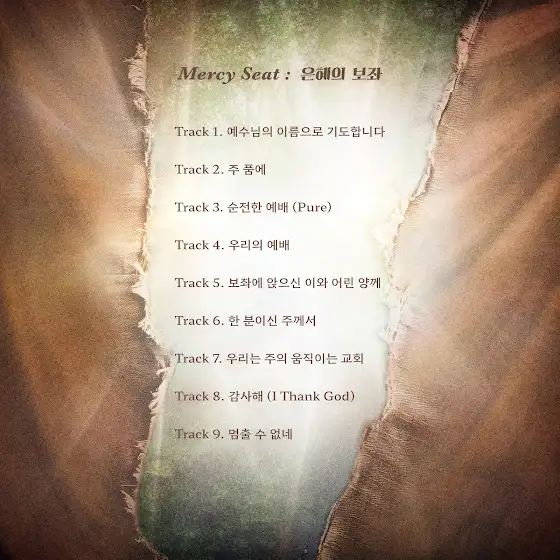 D - 1내일입니다🔥이번 앨범은 자작곡 4곡(1,4,5,6)해외워십의 한국어공식번안곡 2곡(3,8)한국교회가 사랑하는 기성곡 3곡(2,7,9)총 9곡으로 구성되어 있습니다.25.02.24 12pm(kst)[Mercy Seat : 은혜의 보좌]