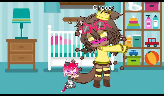 My little sister Colette hugs @ChocoThe_Cat's tail for making a drawing for her. ☺️