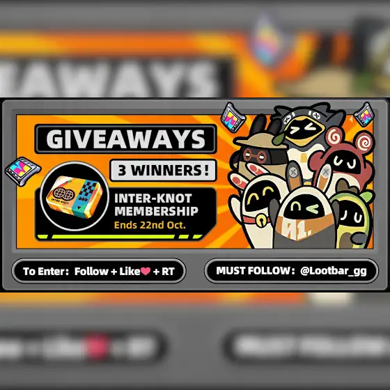 🙌 To celebrate ZZZ 2.3 Phase I, 🙌 We're launching GIVEAWAYS on X and FB! 🎁💎 Inter-Knot Membership GIVEAWAYS 💎🎁 🪄 Total 4 WINNERS! 🎆 🎮 Not a zzz player? You can choose gift of equal value for any game supported on LootBar!! 👇 Follow LootBar official account and participate 👇 X: x.com/Lootbar_gg/status/1978343596089896961 FaceBook: www.facebook.com/share/p/16YVHeLohC/ 😉 Don't miss out - double the platforms, double the fun! 🥁