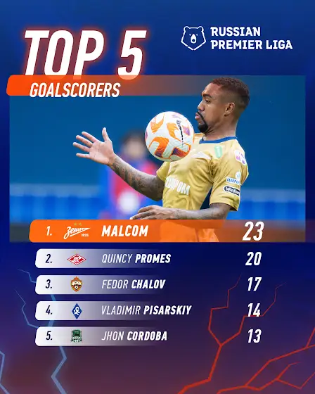 💥 Malcom is on top #RPL goalscorers