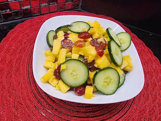 Day 7: Eat cucumber challenge. This was an awesome dinner. It is worth trying. Grapes,mangoes,cucumber, and pink salt are all you need.
