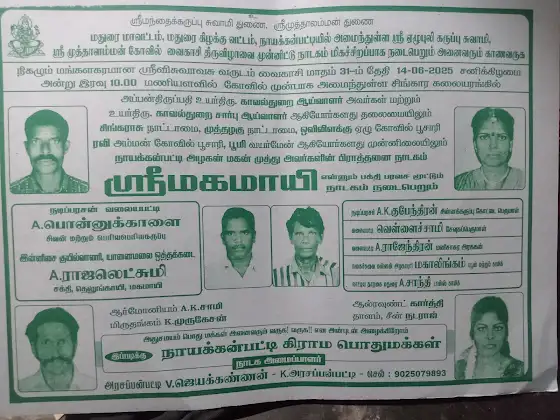 மதுரை மாவட்டம் அழகர்கோவில் மேலநாடு நாயக்கன்பட்டி கிராமத்தில் அமர்ந்த இருக்கும் முத்தாலம்மன் திருவிழா மகமாயி பக்தி நாடகம் நடைபெறும்(14/06/2025).... அழகன் மகன் முத்து அம்பலம் அவர்களின் பிராத்தனை வேண்டுதல் நாடகம்... 40 வீட்டுக்காரர் மூப்பனார் அம்பலக்காரர் மேலூரான் வகையாற...