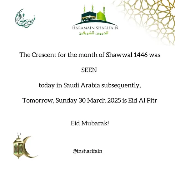 𝗕𝗥𝗘𝗔𝗞𝗜𝗡𝗚 𝗡𝗘𝗪𝗦: 𝗘𝗶𝗱 𝗔𝗹 𝗙𝗶𝘁𝗿 1446/2025 𝗶𝘀 𝘁𝗼𝗺𝗼𝗿𝗿𝗼𝘄: 𝗦𝘂𝗻𝗱𝗮𝘆, 30 𝗠𝗮𝗿𝗰𝗵 2025