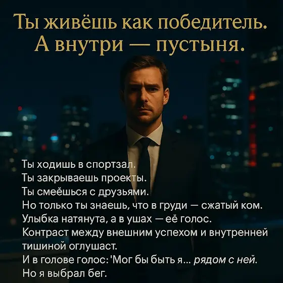 Он думает, что справляется. Бьёт грушу в спортзале. Улыбается на встречах. Ставит лайки чужим фото. Но стоит выключить свет — и его накрывает.