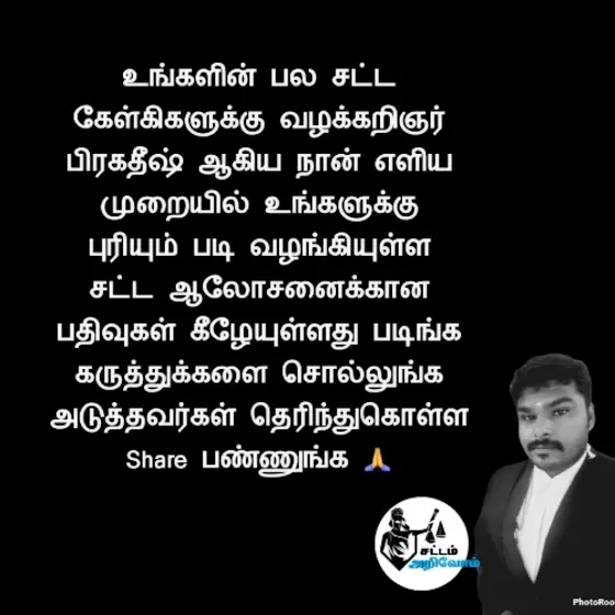 சட்ட தகவல்களை படியுங்கள் அடுத்தவர்களும் தெரிந்துகொள்ள Share பண்ணுங்க நன்றி. 🙏