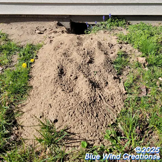 Helen lives under our garage and she currently has 3 entrances/exits that she has dug out on 2 different sides of the garage. 😋