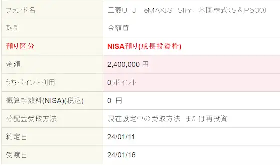 新NISA、SP500で注文したンゴ