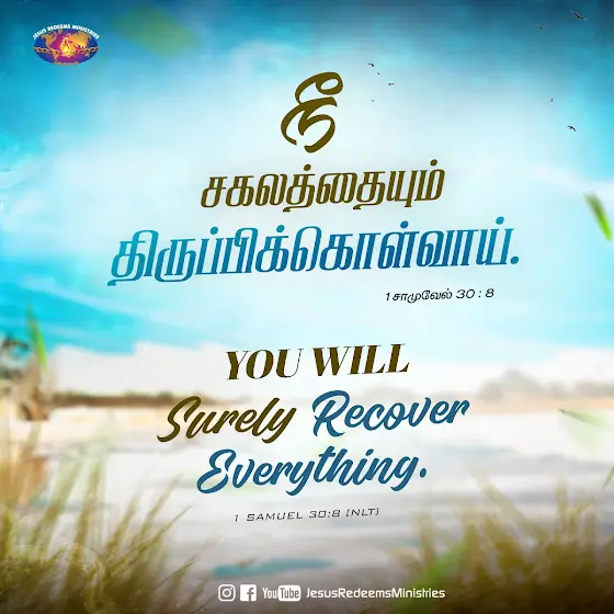 நீ சகலத்தையும் திருப்பிக்கொள்வாய். 1 சாமுவேல் 30 : 8...#dailypromiseword #wordofhope #wordoftheday #bibleverses #jesusredeemsministries #comforter #comforterdigitalchannel #promisesofgod #godspromise #promiseoftheday #promiseword #promiseverse #dailybibleverse #dailypost #dailydevotional #dailyverse #bibleverses #bible #bibleverseoftheday #bibleversedaily #tamil