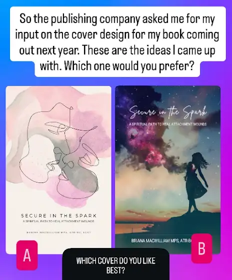 Which book cover do you like best? A or B? The title is "Secure in The Spark: A Spiritual Path To Healing Attachment Wounds." *These are not final mockups, they just asked me for some moody inspiration.