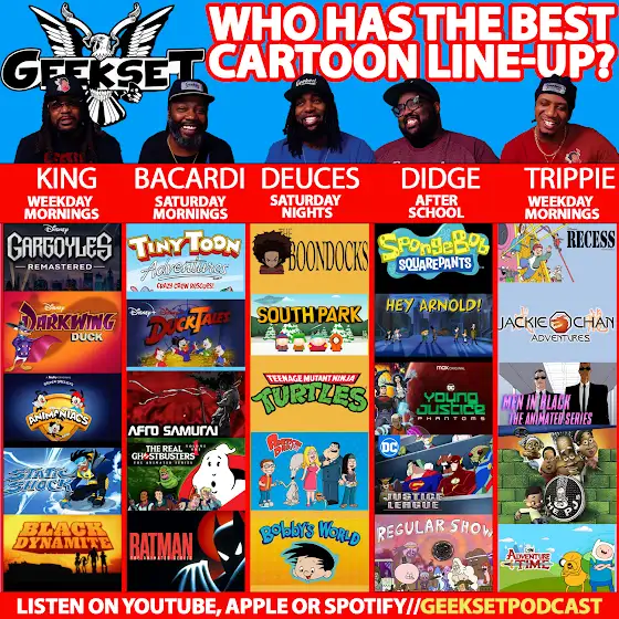 THE GREAT CARTOON LINE- UP DEBATE!!! Who has the best lineup out of the 5? Who you watching first? Vote and Discuss below!!! Listen to the discussion - youtube.com/live/l_n9MwmXD3I?si=3wQk_sQb3jmt1QKU#Geekset #GeeksetPodcast