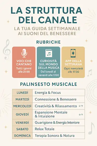 🎶 La Struttura del Canale – La Tua Guida Settimanale ai Suoni del Benessere 💫