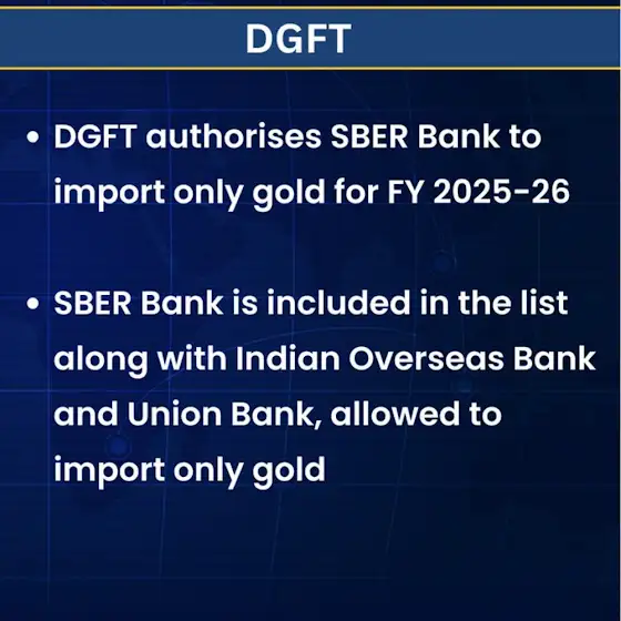 DGFT Authorises SBER Bank To Import Only Gold For FY 2025-26 #DGFT #GoldImports #SBERBank #IndianOverseasBank #UnionBank #FY2025_26 #TradePolicy #etnowWatch Only On ET Now