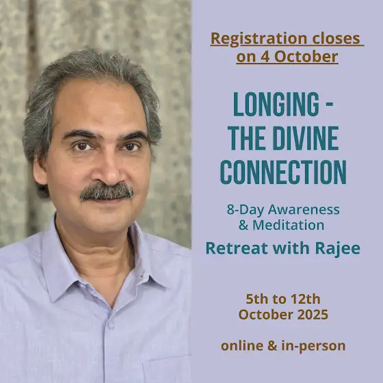If you wish to join the Awareness & Meditation Retreat with Rajee this October, we recommend attending as many meetings as possible to make the best use of your time with Rajee. However, if work, time zones, or other circumstances prevent you from attending all Meetings, you are very welcome to participate.