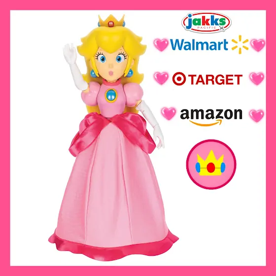 💗New 12 inches Yours truly, Princess Peach figure from jakks Pacific releasing in November 2025 at Walmart, Target and Amazon she’s battery powered and makes 25 + iconic quotes, sounds and Music by pressing her emblem^o^ ✨ Press lightly downward and her skirt balloons out to mimic her iconic floaty jump pose!💗