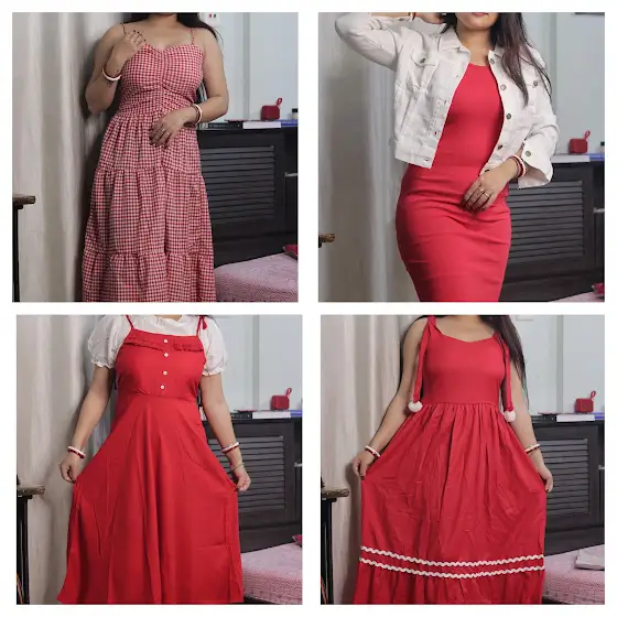 1. Women's Trendy Casual Solid Shoulder Dungaree Dress Dungaree Dress WhiteTop Dress For Girl Classic Rayon Dungaree dresswww.wishlink.com/share/nnszzj2. WESTERN RED DRESS WITH JACKETwww.wishlink.com/share/d87rt3. Trendy women fit and flare Checkered a line maxi ling dresswww.wishlink.com/share/qyc8n4. Trendy Fashionable Woman Dress www.wishlink.com/share/xupe3