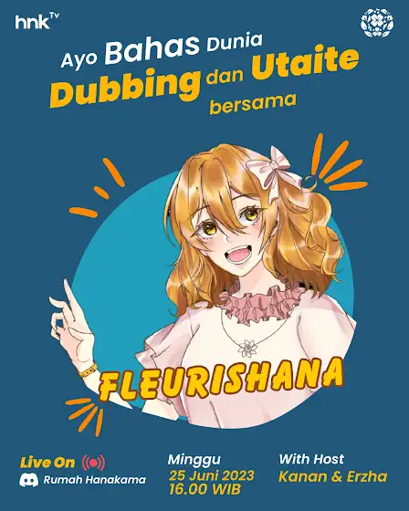Selamat malam! ๐ป Hari Minggu ini aku akan jadi 'tamu' di rumah keduaku sendiri, Server Discord Rumah Hanakama, untuk ngobrol-ngobrol bersama duo host kece seputar... diriku! ๐ณ