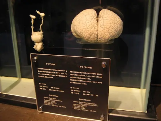 Essa é a comparação entre o cérebro de um tubarão e o cérebro de um golfinho. Dá pra ver porque golfinhos são considerados animais inteligentes! [fonte da foto: buff.ly/3Phrmy9]