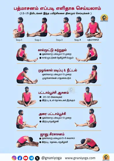 பத்மாசனம் எளிமையாக செய்ய பயிற்சி முறைகள் தொடர்ந்து ஆசனம் பயிற்சி செய்ய பாசனத்தில் ஏதாவது சந்தேகம் இருந்தால் கமெண்ட் பண்ணுங்க இந்த மாதிரியான பயனுள்ள தகவல் இருக்கு நம்ம பேஜ் ஃபாலோ பண்ணி #gnaniyoga #யோகா #yoga #weightloss #fitness #healthandwellness #lotuspose #பத்மாசனம்