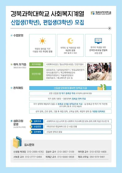 경북과학대학교 사회복지계열 7윌 1일부터 2026년 신입생 모집 중입니다