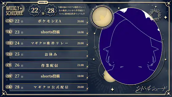 12/22の週の配信スケジュールです! 予定なので変更があった際はX(旧Twitter)でお知らせします! 是非フォローしてもらえると嬉しい! X(旧Twitter)▷x.com/Shido_MagiChro
