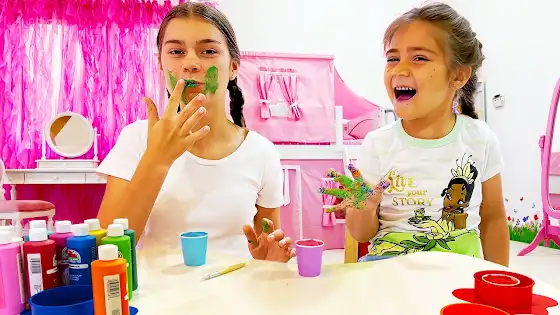 Настя и Мия показывают эксперименты с красками и цветами