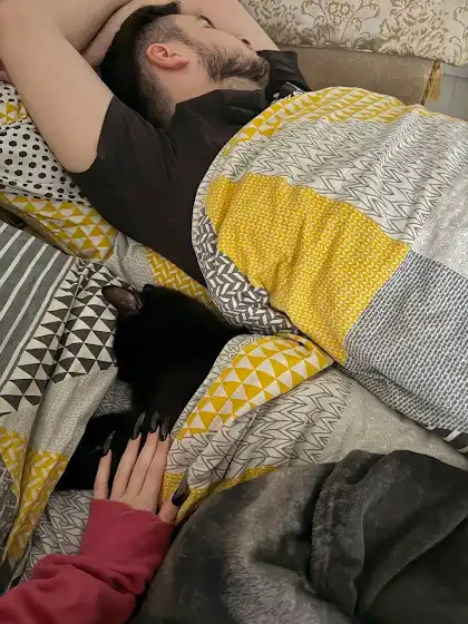 Сегодня мне 28 👴🏻Не хочу ничего писать.Лучше посмотрите, как мы спим с котом.