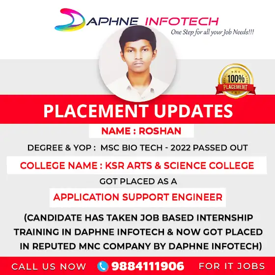 DAPHNE INFOTECH PLACED ROSHAN (KSR ARTS & SCEINCE COLLEGE - MSC BIO TECH - 2022 PASSED OUT) AS A APPLICATION SUPPORT ENGINEER