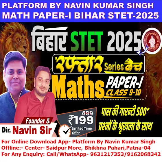 RAFTAR BATCH FOR BIHAR STET MATH PAPER-I (9-10) 500+ MCQ's