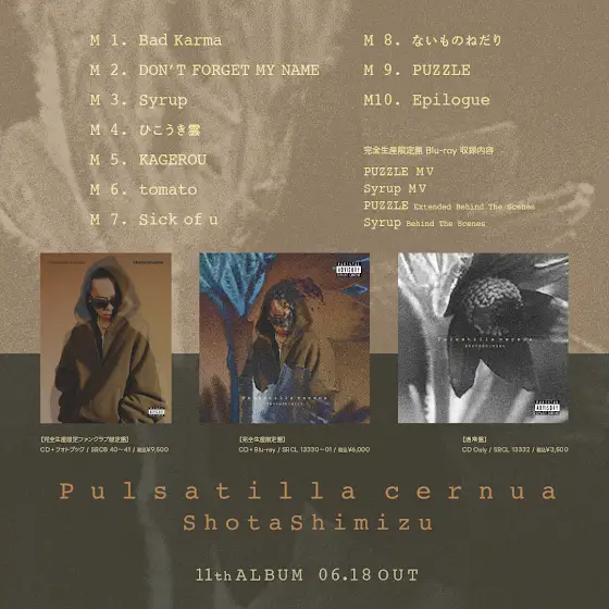 ◤ ̄ ̄ ̄ ̄ ̄ ̄ ̄ ̄ ̄ ̄ 𝚂𝙷𝙾𝚃𝙰 𝚂𝙷𝙸𝙼𝙸𝚉𝚄 𝟷𝟷𝚝𝚑 𝙰𝚕𝚋𝚞𝚖 “𝙿𝚞𝚕𝚜𝚊𝚝𝚒𝚕𝚕𝚊 𝚌𝚎𝚛𝚗𝚞𝚊” 𝟸𝟶𝟸𝟻.𝟶𝟼.𝟷𝟾 𝙾𝚄𝚃 __________◢ www.sonymusic.co.jp/artist/shotashimizu/info/57417… #清水翔太 #Pulsatillacernua