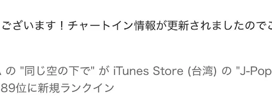 iTunes Store(台湾)J-Popトップソングで 89位 にチャートインしました。
