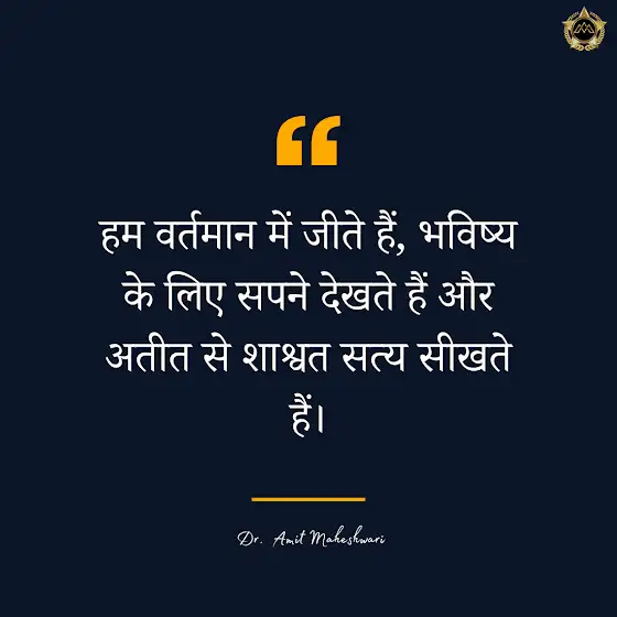 "рд╣рдо рд╡рд░реНрддрдорд╛рди рдореЗрдВ рдЬреАрддреЗ рд╣реИрдВ, рднрд╡рд┐рд╖реНрдп рдХреЗ рд▓рд┐рдП рд╕рдкрдиреЗ рджреЗрдЦрддреЗ рд╣реИрдВ рдФрд░ рдЕрддреАрдд рд╕реЗ рд╢рд╛рд╢реНрд╡рдд рд╕рддреНрдп рд╕реАрдЦрддреЗ рд╣реИрдВред"