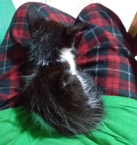 Mi gato esta acostado en mi regazo :3 💗❗❗(no pregunten porque ando en pijama esque ando frio por las lluvias 👍)