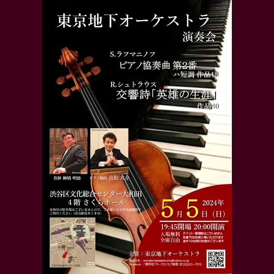 ラフマニノフ ピアノ協奏曲第2番 明日(2024/5/5(祝))渋谷大和田さくらホールで演奏します。19:45開場、20:00開演入場無料、チケット・予約不要です。(先着750名のみ入場可)↓↓リハーサルの様子はこちらです↓↓youtube.com/shorts/STttBQtKP0...たくさんの皆様のお越しをお待ちしております。