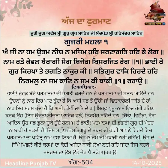 Hukamnama Sahib from Sri Darbar Sahib Sri Harmandir Sahib Sri Amritsar 14-10-2025 Tuesday #headlinepunjabtv #sgpcnews #hukamnamasahib #live #reels #sikhnews #HazooriRagi #khalsa