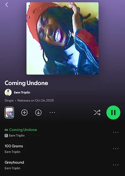 “Coming undone” on all plats now 🙇🏾♂️eemtriplin.lnk.to/comingundone