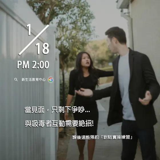 身為家人朋友,看著親近的人深陷毒癮,心中一定充滿了無奈與焦慮。你是否曾想過:為什麼勸說無效?如何與吸毒者溝通?有什麼方法可以讓他願意戒毒?114年1月18日(六)下午2點至4點,那可拿新生活教育中心邀請您參加**「穿越逆境,永不放棄」分享會**,由國內毒品戒除專家譚熺賢講師,透過多年實務經驗,為您揭開毒癮背後的真相,並提供您實用的溝通技巧,協助您與吸毒者建立更有效的溝通管道。課程重點:吸毒者的表面的面具/ 他說不想戒不代表真的不想戒毒。戒毒第一步/ 要不要戒毒端看他的意願,如何讓他改變想法至關重要。有效的溝通技巧/ 學習如何與吸毒者對話,讓他願意說也願意聽。講師介紹:譚熺賢講師,國內毒品戒治及預防專家,20多年來致力於協助無數個家庭走出毒癮的陰影。他深知家人的支持對戒毒者而言有多麼重要,因此希望透過這次分享會,能幫助更多人了解毒癮,並學會如何提供有效的幫助。活動資訊:時間: 114年1月18日(六)下午2點至4點方式: 線上會議軟體洽詢專線: (03)8671369 張其駿先生毒癮並不可怕,可怕的是不知道如何面對!撥打免付費毒品戒除諮詢專線03-8671369,讓專業人員協助您!#戒毒諮詢專線 #03-8671369 #戒毒分享會 #那可拿新生活教育中心 #那可拿台灣 #新生活教育中心#穿越逆境永不放棄