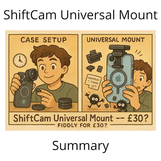 A visual summary of my new video review of the ShiftCam Universal Mount. Is the mount any good? Watch to find out here https://youtu.be/dACvFHohR2Y