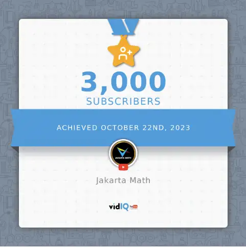 "Alhamdulillah, Terima kasih kepada semua member setia yang telah berlangganan, sehingga channel @JakartaMath kini telah mencapai 3000 subscriber! Terus dukung kami dalam perjalanan matematika yang menarik ini. Kami berterima kasih atas setiap dukungan dan komitmen Anda."