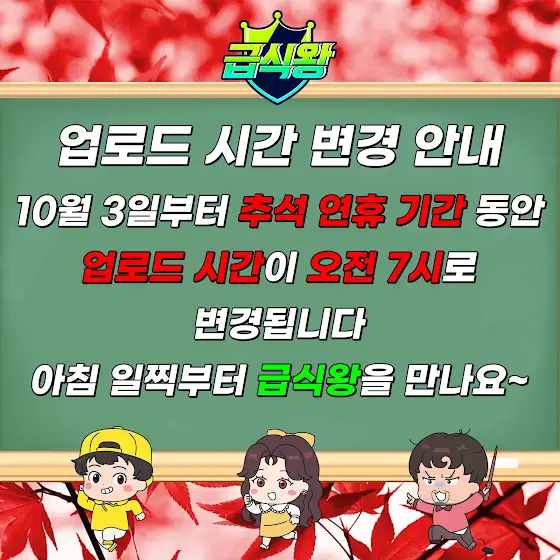 급식왕이 추석 연휴를 동안 업로드 시간을 변경해요!!