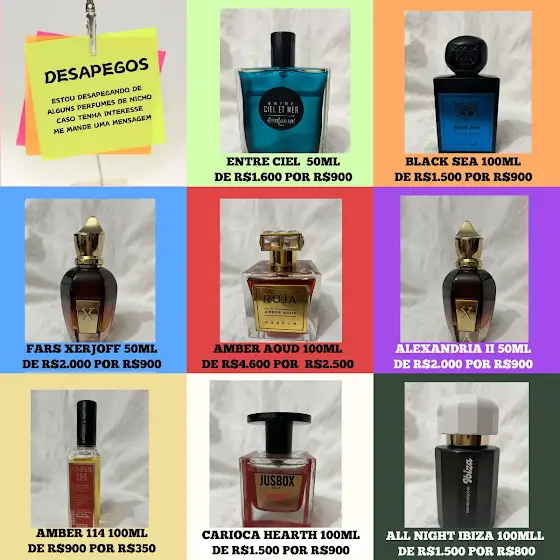 Como forma de celebrar este momento, estou disponibilizando uma seleção exclusiva de desapegos. São perfumes muito procurados, escolhidos com cuidado, e agora oferecidos por valores realmente imperdíveis.