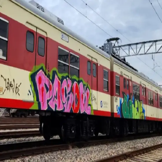 지하철 전동차에 대형 낙서