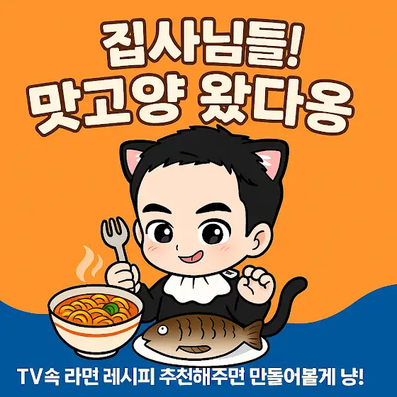 ✨집사님들! 드디어 우리만의 호칭을 정했습니다✨앞으로 맛고양을 사랑해주시는 팬분들은 집사님이라고 부르려고 해요🐱맛고양을 돌봐주고, 함께 키워주는가족 같은 느낌이라 너무 잘 어울리죠? 또 이 커뮤니티에서 집사님들과더 자주 놀러 오려고 합니다. 👉 요즘 제가 빠진 맛집 이야기👉 그리고 집사님들이 추천해주신 메뉴 체험기까지! 특히 집사님들이 티비에서 본 라면 레시피나실제로 만들어봤는데 너무 맛있었던라면레시피를 그대로 따라 만들어 보는[집사레시피 챌린지] 코너를 시작하려고 해요 🍜 “방송에서 본 그 맛, 진짜 똑같을까?”다같이 즐겁게 검증해보는 시간이 될 거예요.집사님들은 요즘 어떤 라면에 빠져 계세요?댓글로 알려주시면 제가 꼭 만들어 볼께요! 앞으로 집사님들과 더 만나는맛고양 되겠습니다!많이 기대해주세요 🐾💛