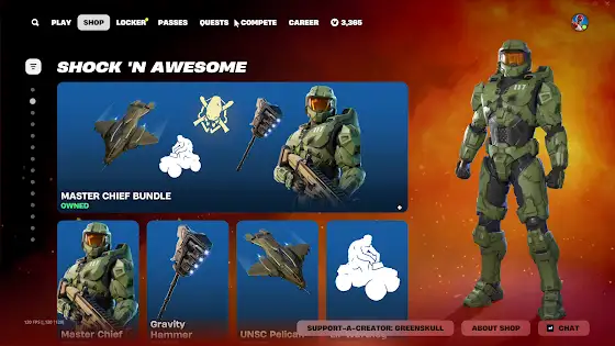 Master Chief is in the Fortnite shop again! Use code GREENSKULL! #EpicPartner